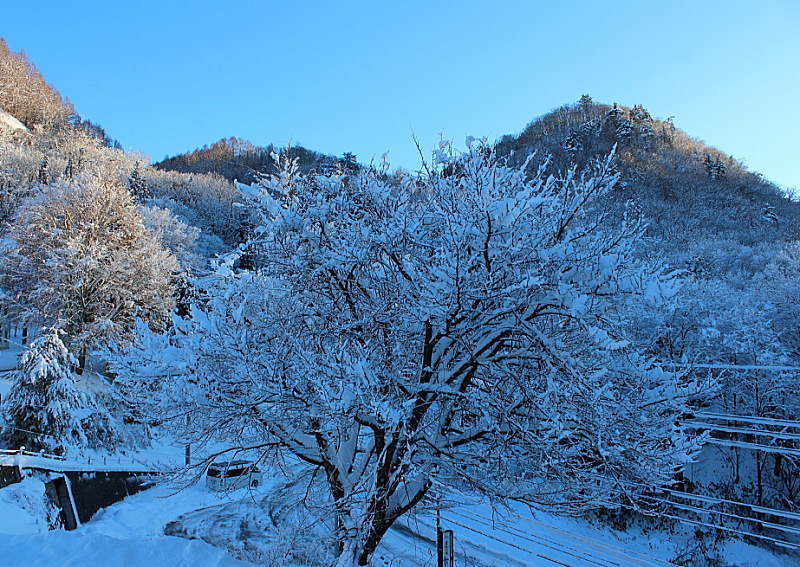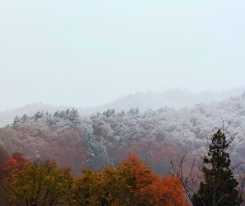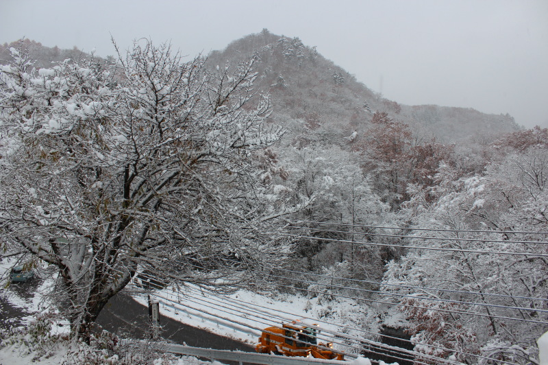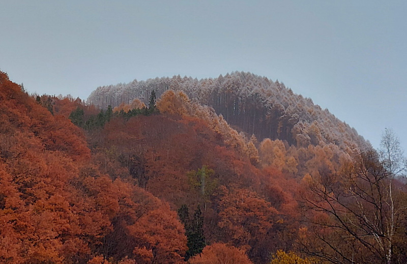 🌳紅葉🍂🍁の木々に、初雪❄️☃️